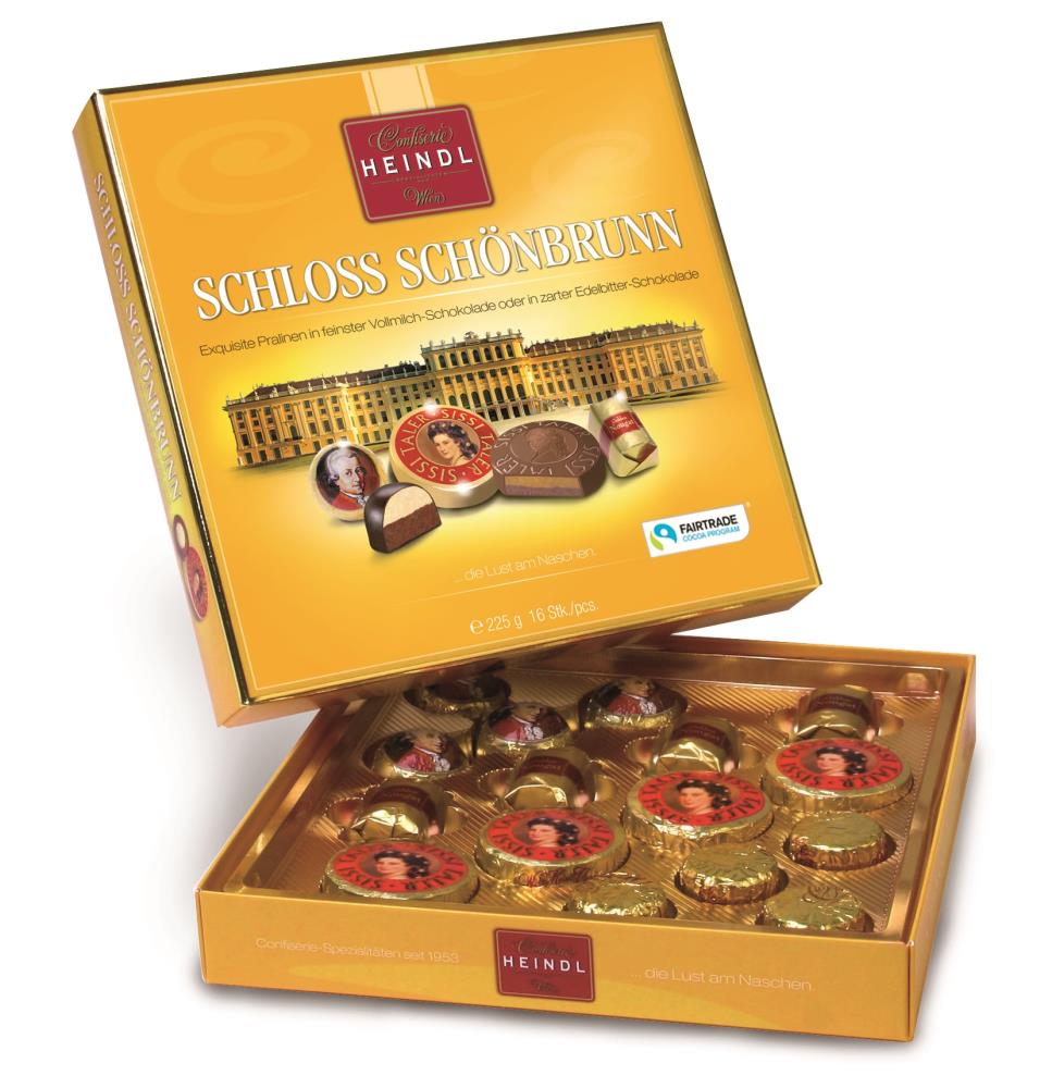 Das Beste vom Besten aus dem süßen Wien: Genießen Sie rot-weiß-rote Konfektspezialitäten wie Mozart Kugeln, Wiener Riesenrad, Golden Nougat, Sissi Taler und Nusskrokant-Praline. Unsere Schloss Schönbrunn ist die perfekte Überraschung für Ihre Liebsten zu Hause!