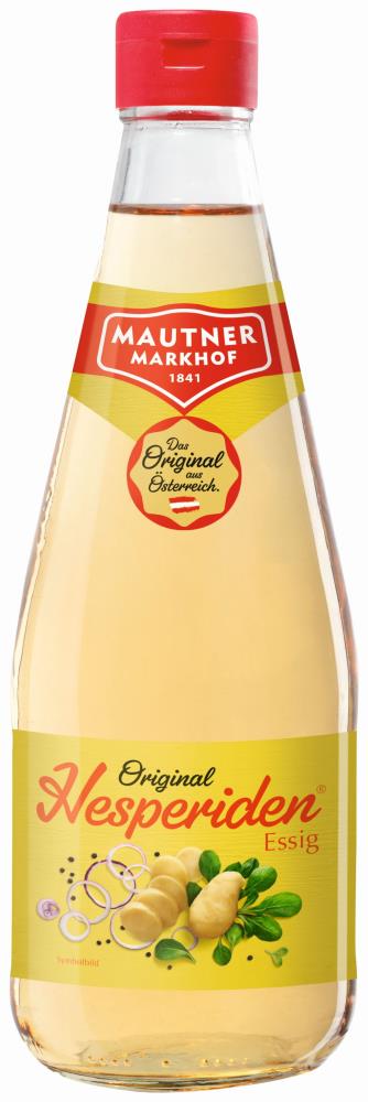 MAUTNER MARKHOF Hesperiden Essig - eine spezielle Komposition aus Weingeistessig, Weinessig und dem Geschmack sonnengereifter Äpfel. Er ist nach den Hüterinnen des Apfelhaines der Göttin Hera benannt - eben den Hesperiden. Diese Nymphen hüteten in einem wunderschönen Garten einen Baum mit goldenen Äpfeln, den Gaia der Hera zu ihrer Hochzeit mit Zeus wachsen ließ. Die Äpfel verliehen den Göttern ewige Jugend.