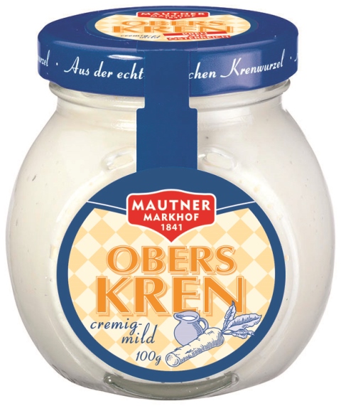 Der Mautner Markhof Oberskren hergestellt aus echtem steirischen Kren mit frischem Obers verfeinert. Wer es fein und cremig mag ist hier genau richtig.