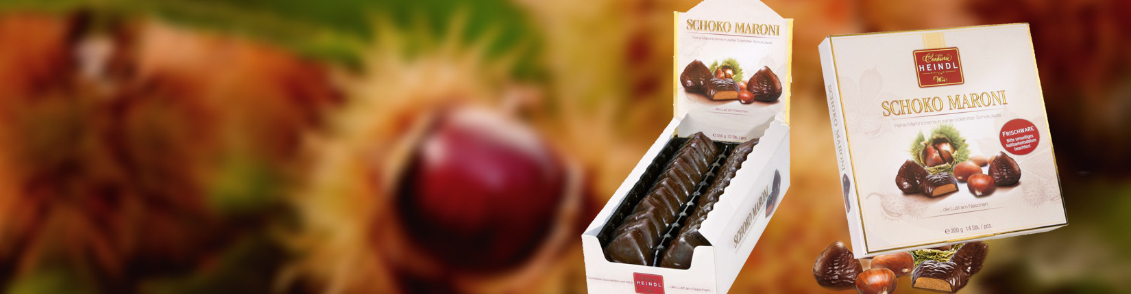 Die Schoko Maroni sind die jüngste Produkt-Innovation aus der Confiserie Heindl u. Pischinger und unterscheiden sich durch eine ausgesprochen zart-cremige Fülle aus feinstem Maroni-Püree mit einer Hülle aus Edelbitter-Schokolade von den marktüblichen Schoko Maroni. Wem also die geprägten Schoko Maroni zu kompakt im Geschmack waren, wird an den neuen, zarten Schoko Maroni seine wahre Freude haben!