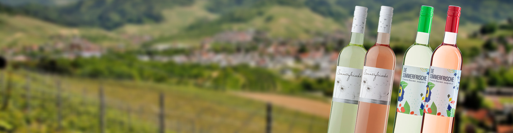 DER SOMMERFRISCHE weiß ist die trockene Variante aus einer animierenden Cuvée aus Veltliner und Rivaner. Der halbtrockene Rosé ist aus der bekannten Rebsorte Blauer Zweigelt.